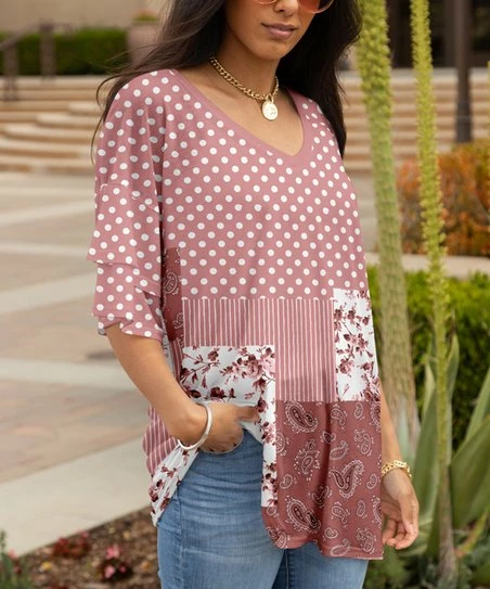 Create an effortlessly chic look with this v-neck tunic that features layered ruffles on the half-sleeves to complement the flowy profile.