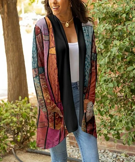 Update your look by layering this open cardigan over any outfit and add a pop of color and print with handy pockets and just the right amount of stretch for all-day enjoyment.