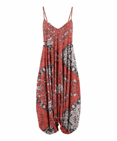 Breeze through the day in ethereal comfort in this sleeveless harem jumpsuit boasting a flattering v-neckline and stretch-infused material in a vibrant allover print.