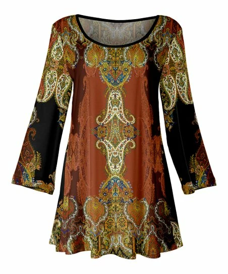 This boatneck tunic is made from a stretch-infused lightweight material with long sleeves and a flowy fit.