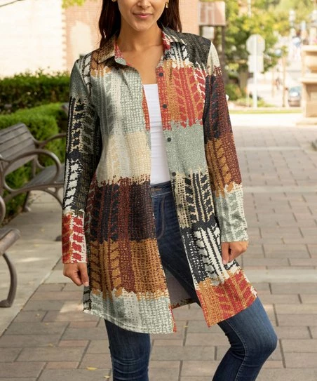 Complete your ensemble with this long-sleeve shacket featuring a poised collar and button-up front.