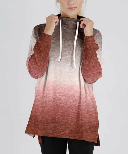 Printed longline pullover featuring funnel collar, drawstring and split hi-low hem.