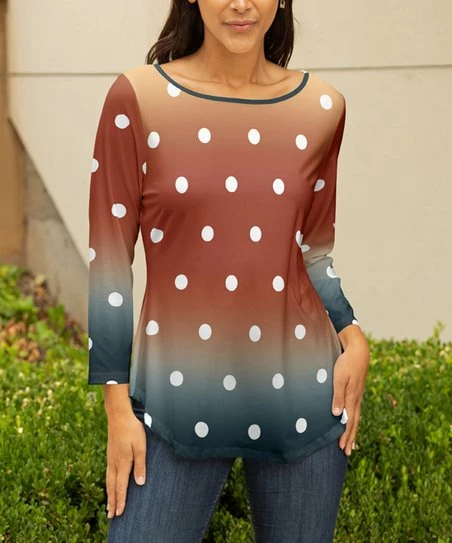 With three-quarter sleeves, a relaxed fit and a stylish print, this elegant boatneck top is an everyday essential.