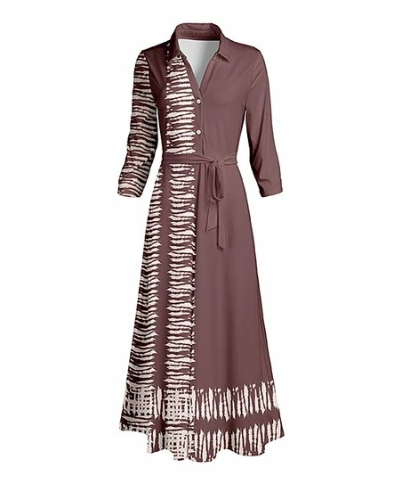 Take on everyday outings and casual get-togethers with effortless grace in this three-quarter sleeve maxi dress styled with a collared button-front bodice and a self-tie sash for flattering definition at the waist.
