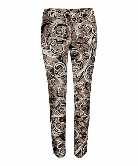 Lily | Taupe & White Scroll Velvet Leggings – Women