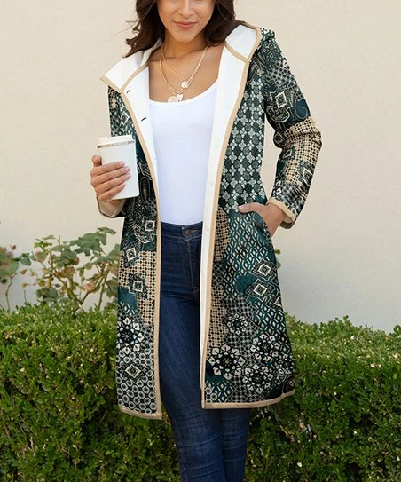 Lily | Teal & Beige Floral Pocket Button-Up Coat – Plus