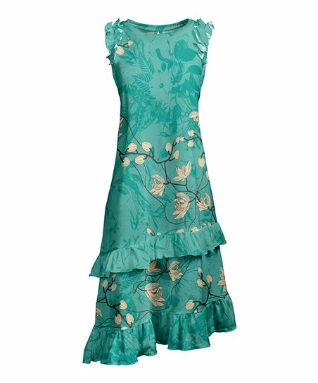 Embrace the effortless elegance of this sleeveless dress that’s detailed with playful ruffles and an asymmetrical hem.