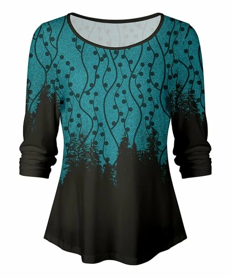 Top off your favorite jeans and leggings with this vibrant top showcasing three-quarter sleeves for a laid-back look.