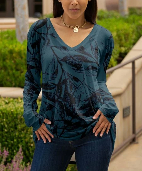 With a flattering v-neck cut and breathable stretchy material, this flowy botanical tunic has both the style and comfort to become your go-to everyday look.