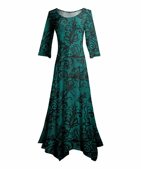 Designed with three-quarter sleeves and a sweeping butterfly hem, this form-elongating number proves that you can be casual with grace.