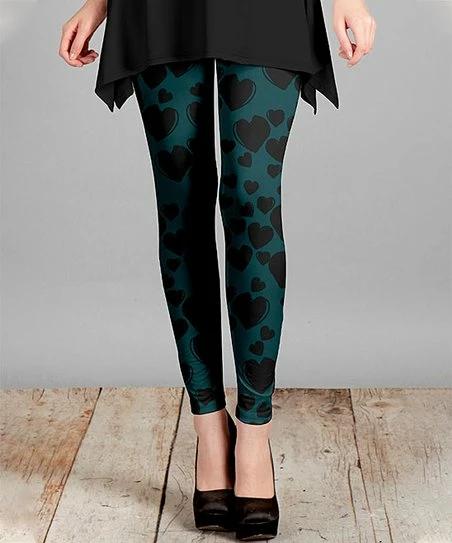 Add a slimming silhouette to your ensemble with these stretch-enhanced leggings boasting a heart pattern.