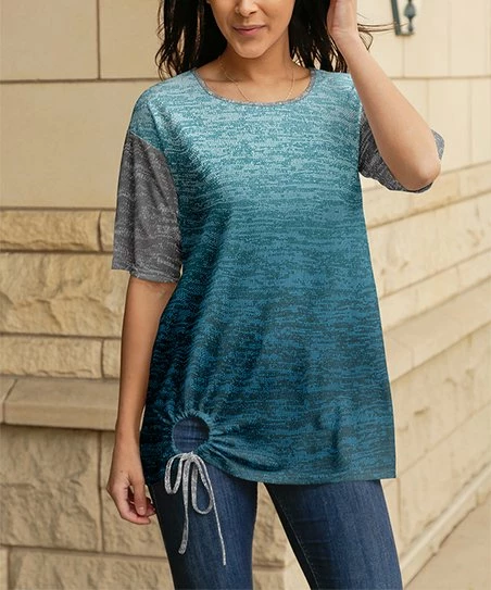 Take on the day in casual comfort thanks to this short-sleeve tunic that features a trendy drawstring accent at the side.