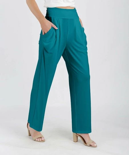Casual straight-leg pants with a comfortable, wide waistband, a bright hue and convenient pockets.