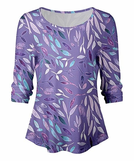 Instantly enliven your look with this boldly patterned top featuring comfy stretch-blend material and three-quarter length sleeves.
