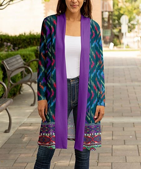 Cardigan featuring a flowy open-front design and stretch-infused fabric.