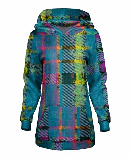 Lily | Teal & Purple Plaid Kangaroo Pocket Hoodie – Women & Plus