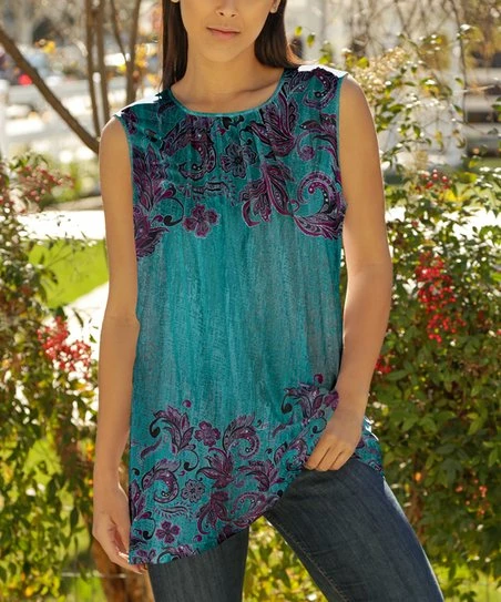 With shaping pleats from neckline to chest, this sleeveless floral tunic ensures a polished look.