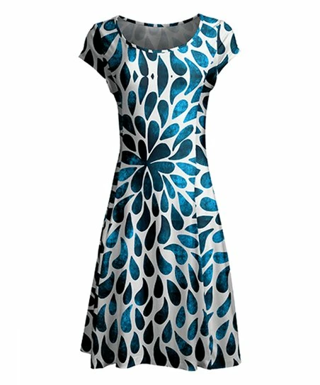 A sweet classic to add to your wardrobe, this cap-sleeve dress hugs your curves gently through the bodice before flaring to a swishing skirt. Stretch-blend fabric promises comfort.