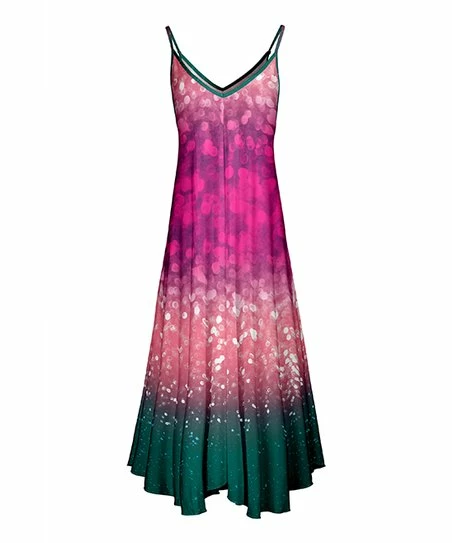 Lily | Turquoise & Pink Abstract Ombré V-Neck Maxi Dress – Women
