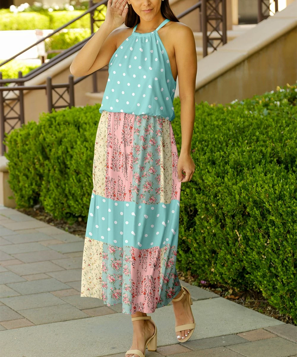 Express airy laid-back style in this sunny-day sleeveless maxi dress designed in bold hues paired with a flattering blouson silhouette.