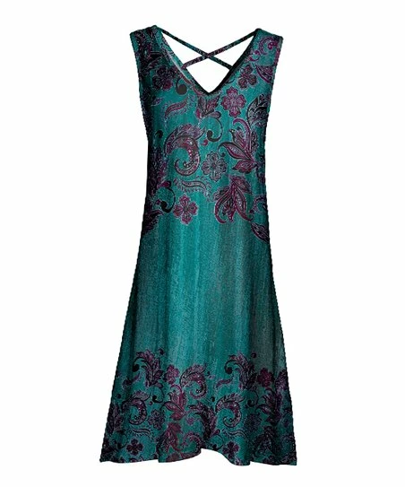 This v-neck sleeveless dress sets you up for memorable entrances and exits with a crisscross back and a vivid print.