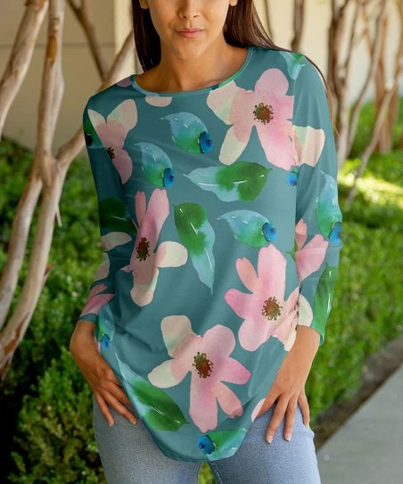 Casual long-sleeve tunic featuring an allover floral print. Crewneck and curved hem.