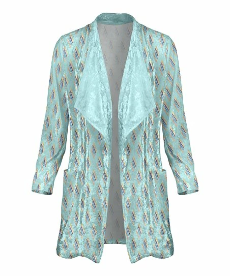 Lily | Turquoise & Yellow Geometric Pocket Velvet Open Cardigan – Plus