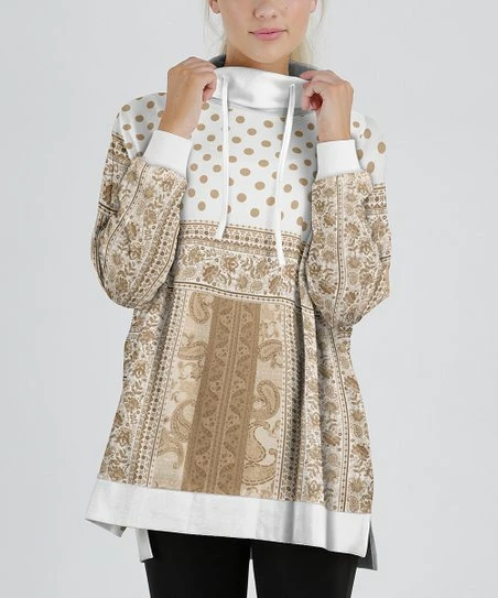 This casual pullover features a drawstring collar with a cowl neck to keep you cozy.