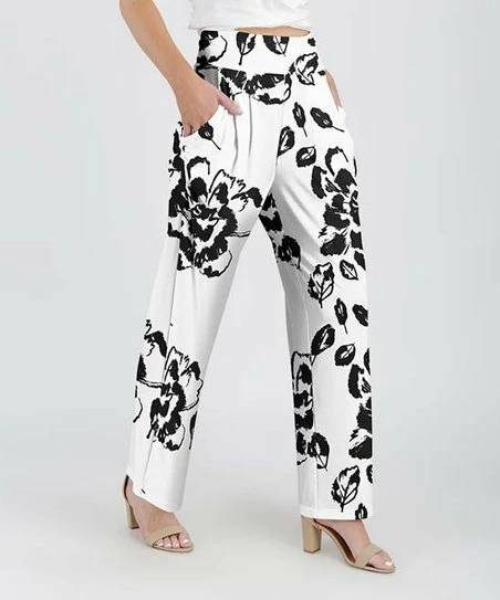 Lily | White & Black Floral Pocket Pants – Women