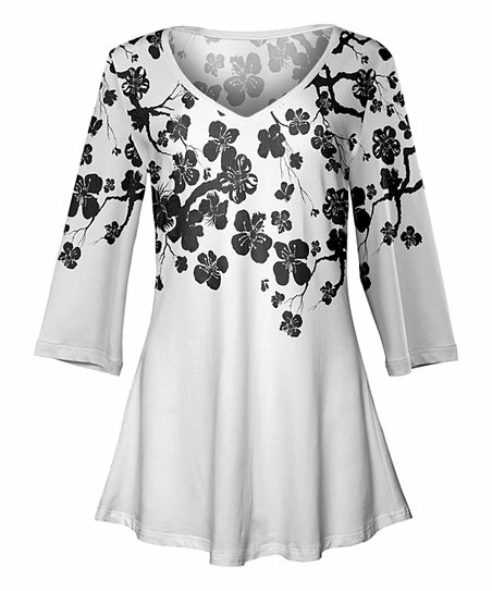 A flattering wide V-neck alongside stitched hem detail make this tunic fit for all sorts of casual activities around town.