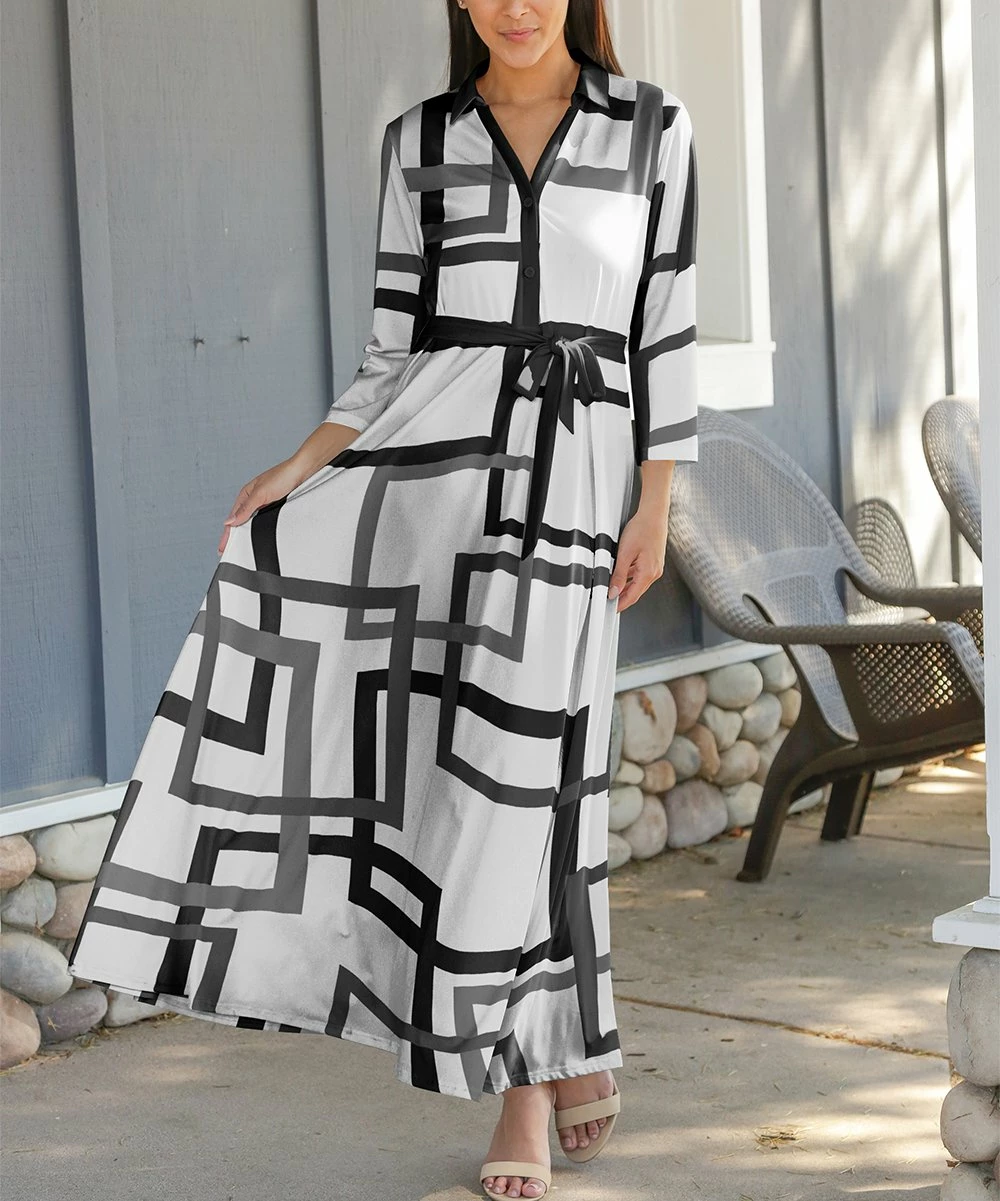 Opt for poise and grace in this flowy shirt dress featuring a crisp collar and sweeping skirt. A tied sash defines the waist and stretch-enhanced material keeps it comfy.
