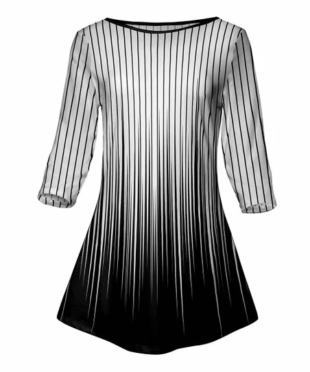 Bolster your wardrobe basics with this breezy tunic sporting an eye-catching print and sporty three-quarter sleeves.