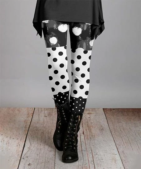 Boost your look with these stretch-enhanced leggings sporting a unique combination of polka dots that will have you stand out in style.