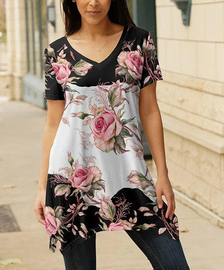 Soft stretch-friendly fabric enhances the relaxed vibe of this short-sleeved tunic featuring flowy sidetails for a boho touch.