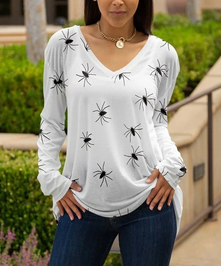 Long-sleeve tunic featuring a v-neck design and comfortable stretch-infused fabric.