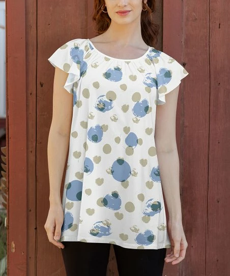 This breezy tunic has flutter sleeves paired with a longer hemline to make the most of the bold print.