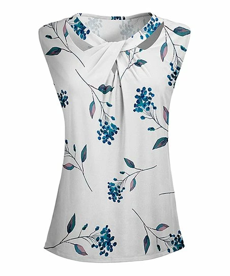 Draw the eye to your face in this boldly patterned tunic designed with an elegant twisted neckline detail bordered by subtle cutouts.