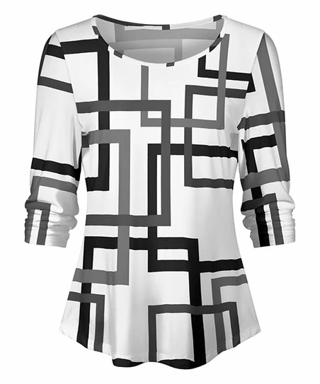 Elevate your ensemble with this long-sleeve top designed with a scoop neckline and playful print.