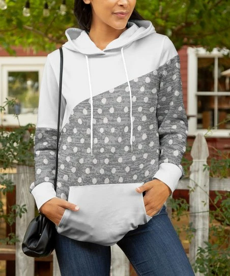 Stretch-filled fabric brings a flexible feel to this patterned hoodie flaunting a convenient kangaroo pocket.