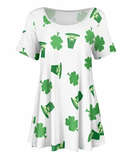 The flowy profile of this short-sleeve tunic is enhanced by its stretch-friendly fabric.