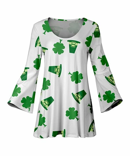 Effortlessly worn with your favorite pair of leggings, this vibrant tunic boasts a bold clover motif to add high levels of luck to your day.