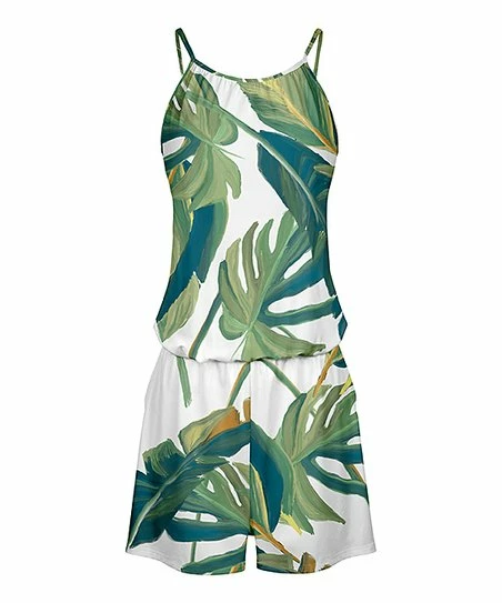 Streamline your warm-weather style with this sleeveless romper featuring a flattering blouson bodice and delicate shoulder straps.