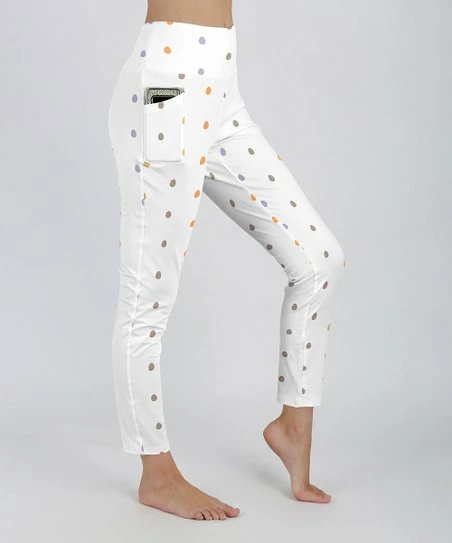 Lily | White & Lavender Dot High-Waist Pocket Leggings – Women & Plus