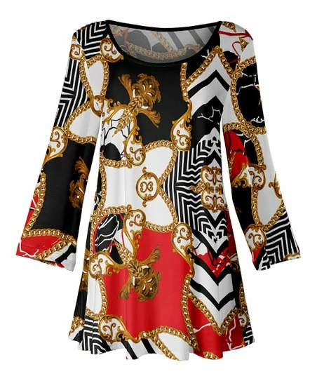 This boatneck tunic is made from a stretch-infused lightweight material with long sleeves and a flowy fit.