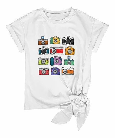 Get a picture-perfect ensemble when you don this snap-worthy tee that features a trendy tied hem.