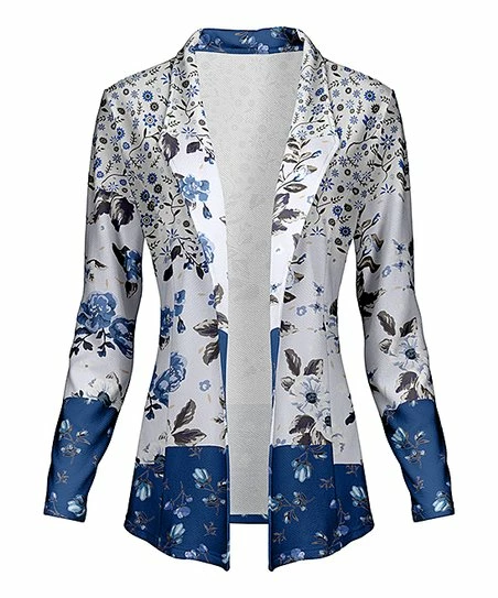 Dress for success with the polished pop of this open-front blazer fashioned with a contemporary floral print to complete your workday wardrobe.