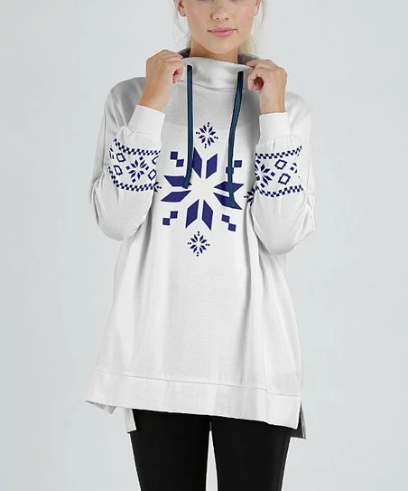 Put the finishing touches on your cool-weather look with this lightweight sweatshirt crafted with a drawstring funnel neck and a festive graphic.