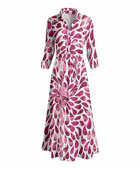 Make an effortlessly polished impression in this long-sleeve maxi dress boasting a creative print, collared button-front styling and a self-tie sash for flattering definition at the waist.