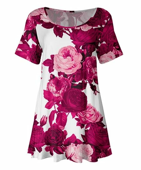 Greet warm weather wearing this scoop neck tunic that flaunts an attention-grabbing print while delivering cool comfort with short sleeves.