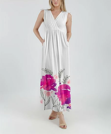 Drawstring straps add flair to this flowy maxi featuring a flattering neckline and outfitted with side pockets to casually rest hands.